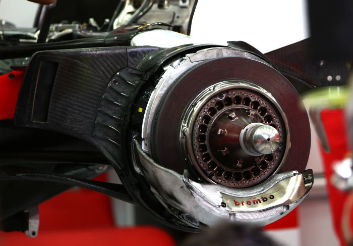 Looking at the rear suspension area of the car it is clear to see how Ferrari has exploited the maximum allowed openings on the rear bodywork for suspension arms. These openings are much bigger than they need to be in order to aid underbody cooling.