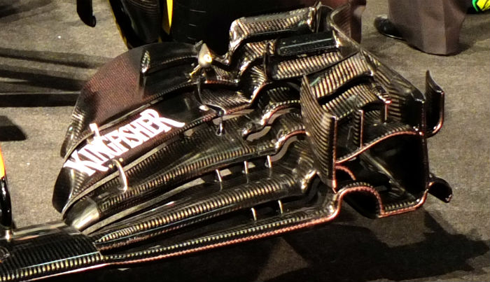 As vented noses are not permissible in the Formula One Technical Regulations if they are deemed to be “see through”; however while the vents captured the attention of many observers in the paddock, Green confirmed that there was never any question as to their legality. ‘The legality was never in question – we didn’t have to change the design from its initial launch. In order to be within the regulations, you can’t have [see] through hole. If you stood in front of the car and looked at the nose, you can’t see straight through – there has to be a curve, so the vent has to curve round and that’s the reason for the panels underneath.’