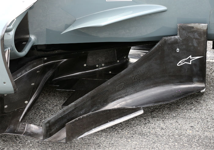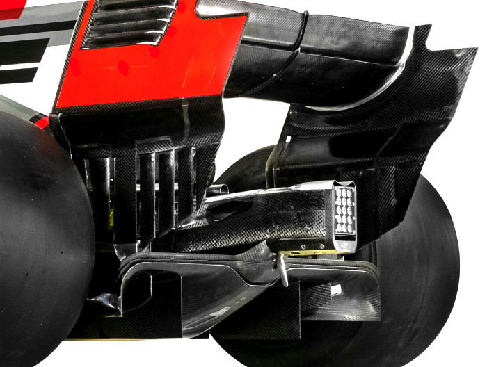 The rear end of the VF-17 is perhaps not as tight as some other cars on the grid. Note the design of the rear floor and the slits in it ahead of the rear wheel.