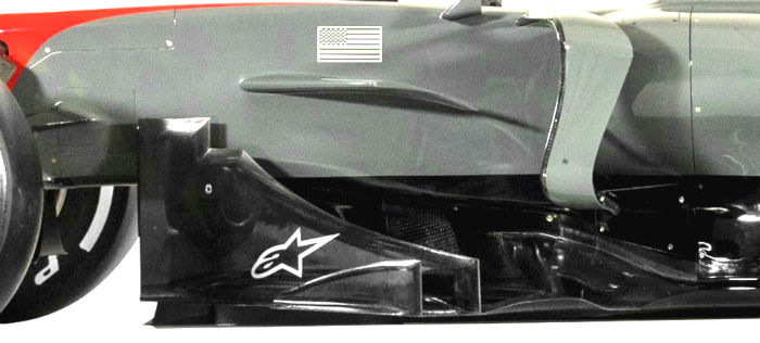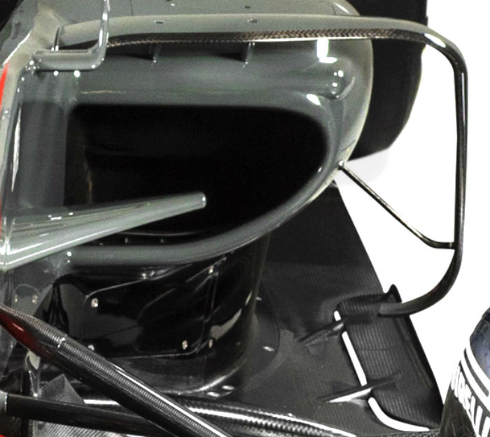 Another look at the bargeboard on the Haas, note how the floor stops, there is a small opening and then the bargeboard assembly has its own ‘floor’ section with a stepped trailing edge.