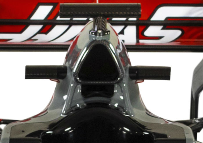 Perhaps as a result the car has a similar shape to the Ferrari on the top of the nose, though at present the Haas does not have a vent where the Ferrari does.