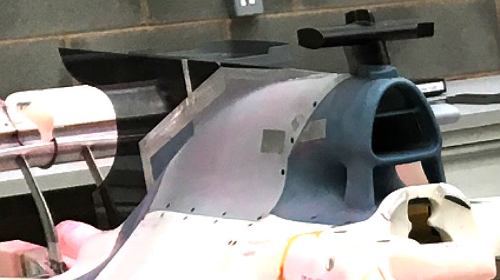 A conventional ‘thumb’ style nose was tested, interestingly this could represent a rather different style of front impact structure.