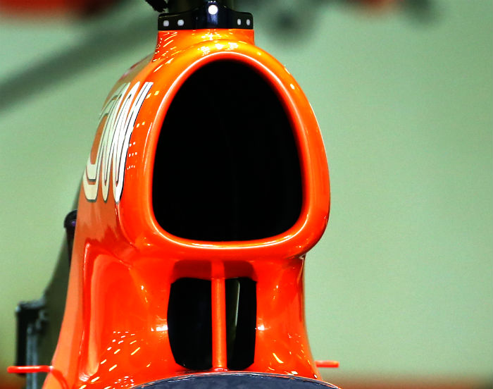 The roll hoop on the MCL32 is fairly conventional and follows the general concept of that used on the MP4-31 with the main duct split between cooling and combustion gas, while a smaller central cooling duct is located below the main duct.