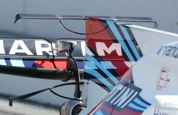 One thing missing from the renders was Williams use of a fin mounted set of winglets. The uppermost winglet is similar in design to that of the Mercedes W08, though mounted onto the engine cover fin rather that on its own dedicated pylon. Note the curved supports leading to the fin, suggesting that the winglet generates some load.