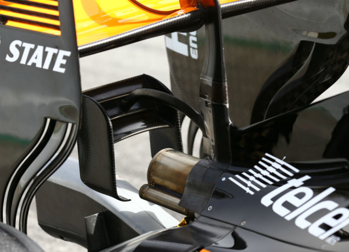 The VJM09 features a twin wastegate exit. Not the base of the winglet which sits directly behind the exhaust exits.