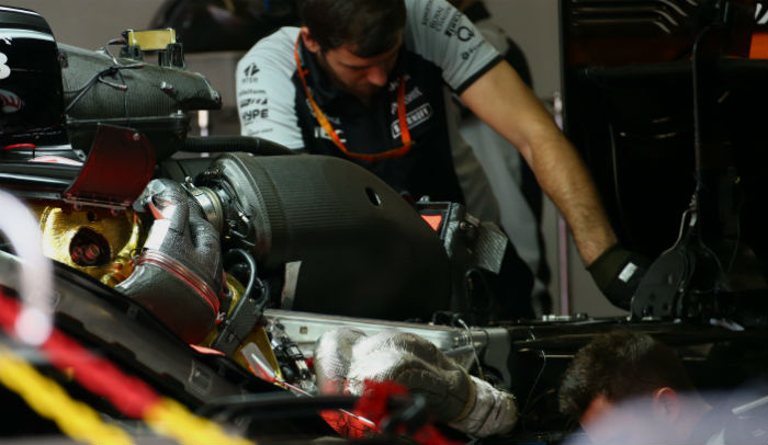 The Mercedes V6 installation is very similar in overall design terms to that used on the VJM08B.