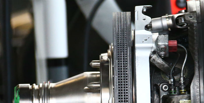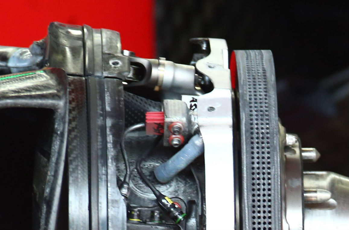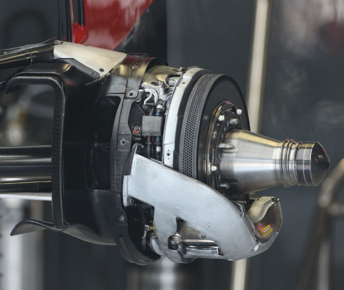 (A look at the rear brakes on the Haas – essentially identical to those used by Ferrari)