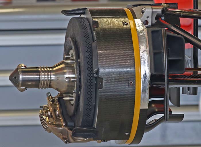 Under bodywork little has changed on the MR03’s the 2014 specification Ferrari power unit is present – with its late season exhaust wrap in evidence, as is the 2014 Ferrari transmission.
