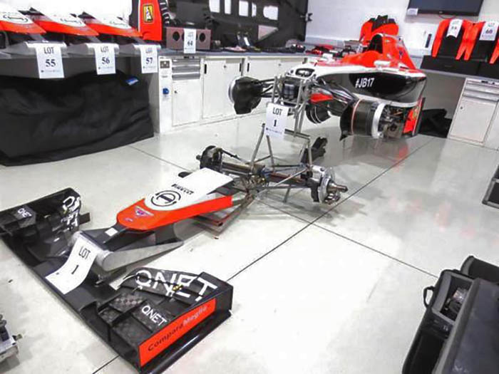 Marussia’s final race was the Russian Grand Prix, after which it collapsed financially and all of its assets were sold off at auction shortly before Christmas 2014. The two remaining 2014 race cars MR03-02 and MR03- 03 were due to be sold off later after Ferrari had removed its assets, the transmissions and engines. The auction was uploaded online and bidding was underway when it was suddenly stopped. A last minute rescue package had been put together.