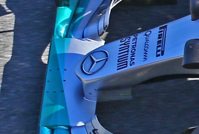 The Mercedes W06 Hybrid has a largely evolutionary design with many major concepts carried over from the dominant W05 Hybrid. However almost all of the components have been refined in some way with many detail changes both visible and under the skin.