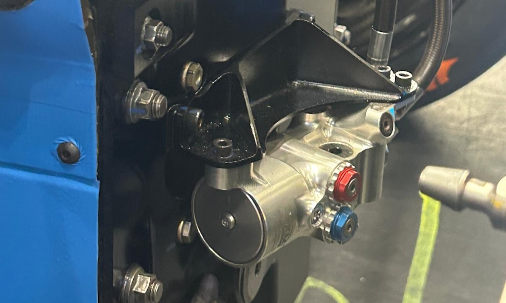 The damper absorbs energy from the steering rack, which runs between the wheels, perpendicular to the steering column. When the rack is moved by contact (with another car or the barrier) the damper activates and reduces the energy passing through.