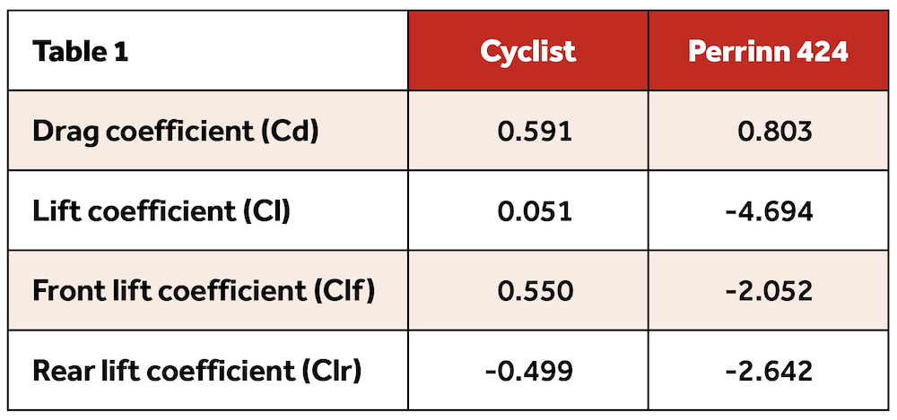 ‘It’s important to note that drag coefficients are a really nice way of comparing the aerodynamic efficiency of designs, irrespective of their size but, in the end, it is the CdA [drag coefficient multiplied by frontal area] value that matters most,’ says Remmerie. ‘In this case, the size of the object and frontal area, A, is taken into account to calculate the final drag force. This force is what dictates the speed of the cyclist, or the fuel consumption of a racecar.’