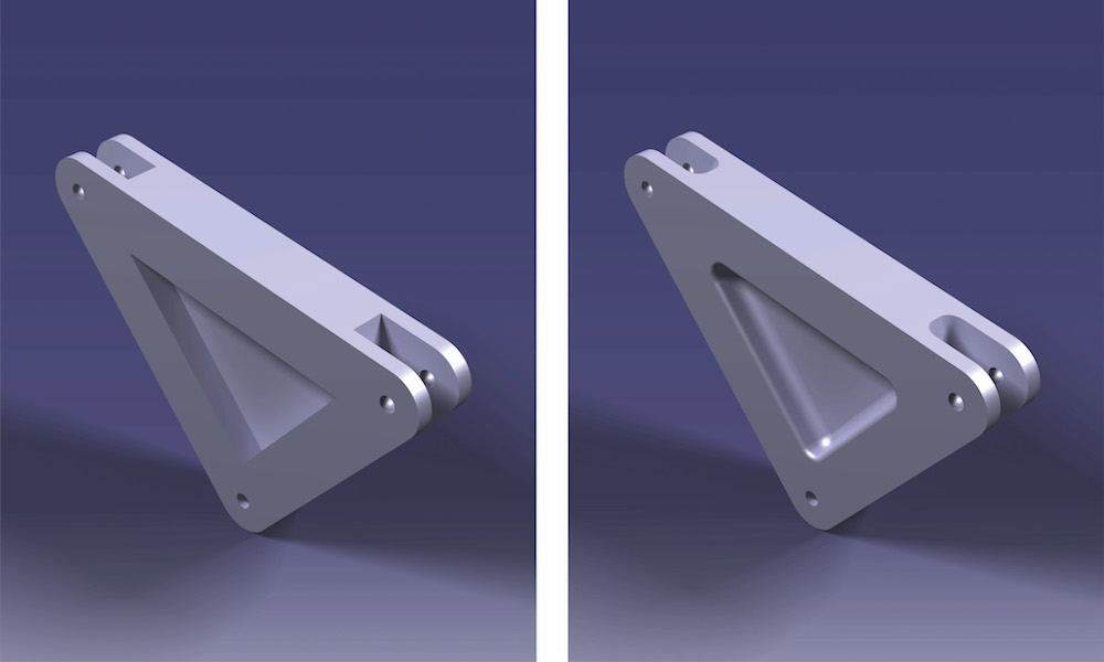 Sharp edges give rise to sharp stress gradients, so fillets and smooth edges and transitions are a designer’s best friend. That’s elementary, but further refinement requires a trained eye, and a particular inspiration.